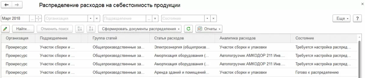 Здесь можно не только произвести анализ состава затрат, но и распределить затраты, тем самым закрыв НП.
