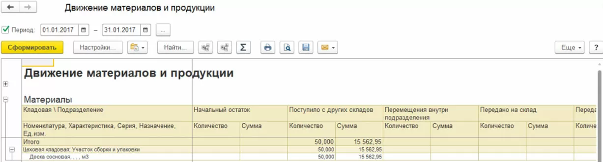 Дополнительно в системе присутствует отчет «Движение ТМЦ и затрат в производстве», который можно вызвать, не открывая рабочее место, из сводного списка отчетов по производству.