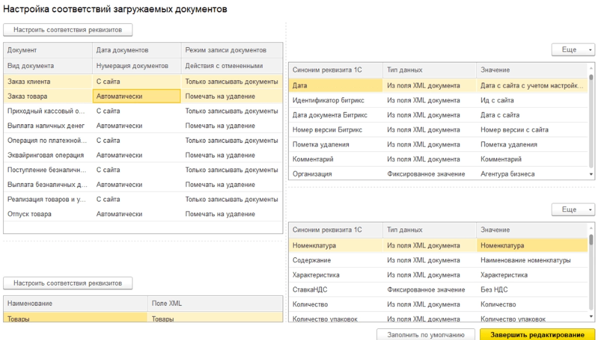 Учитывая специфику бизнес-процессов конкретной компании, нужно выполнить настройку соответствий загружаемых документов.