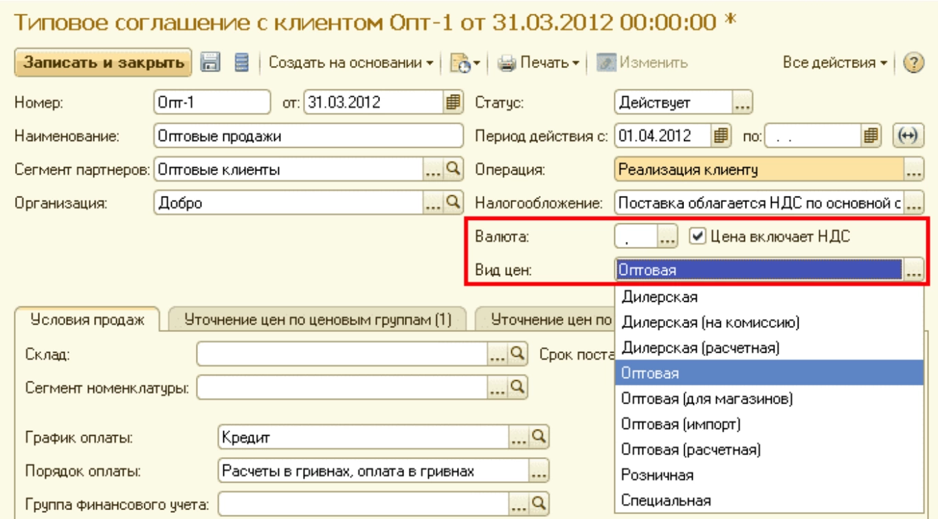 - Выбран ли тип цены в соглашении, и есть ли у товара цена с таким типом.