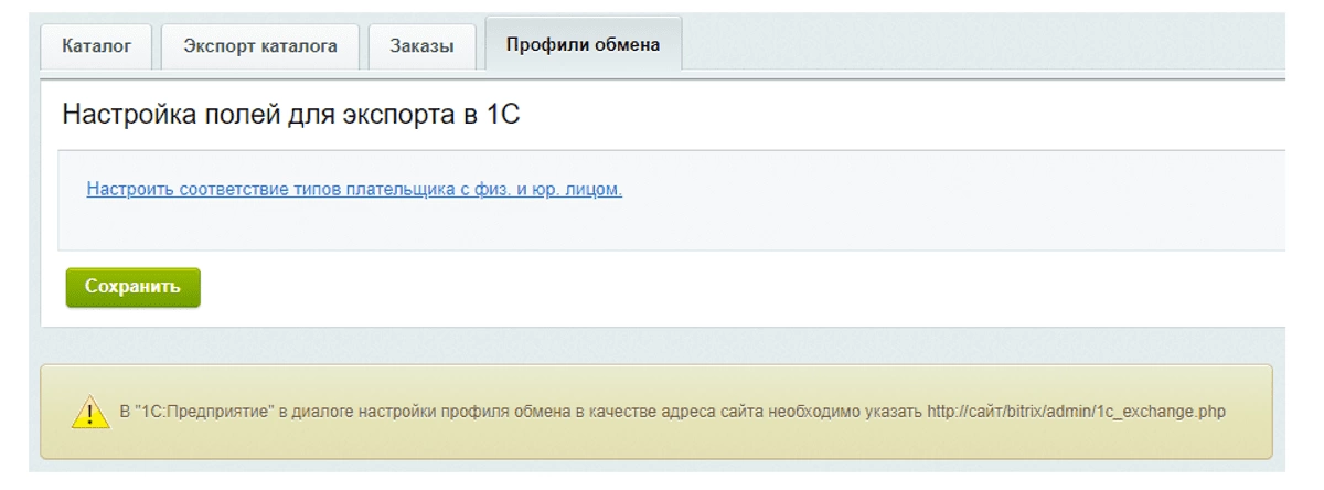 - Адрес сайта (https:[домен]/bitrix/1С/1С_exchange.php);