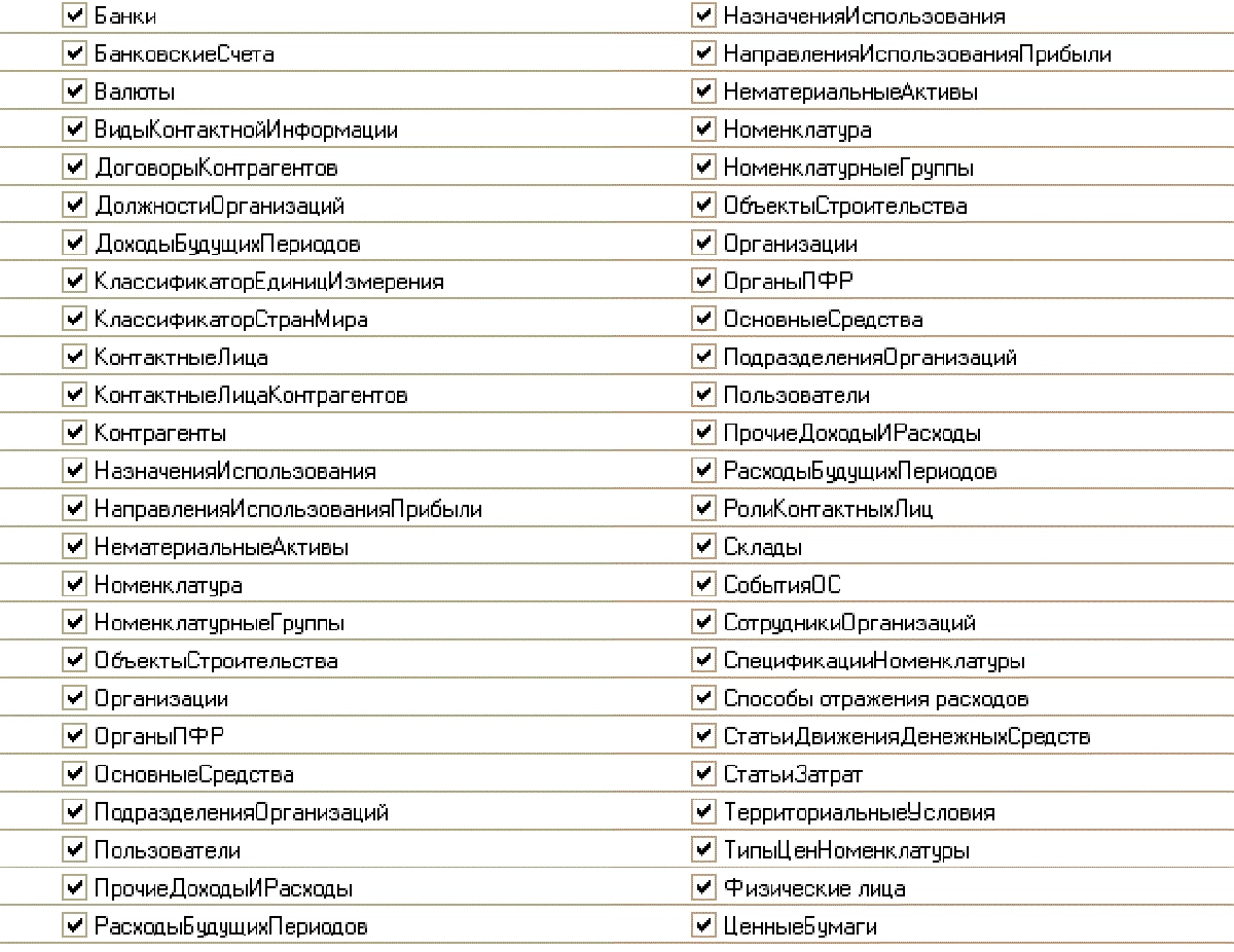 Справочники, которые можно перенести из 1С:УПП.