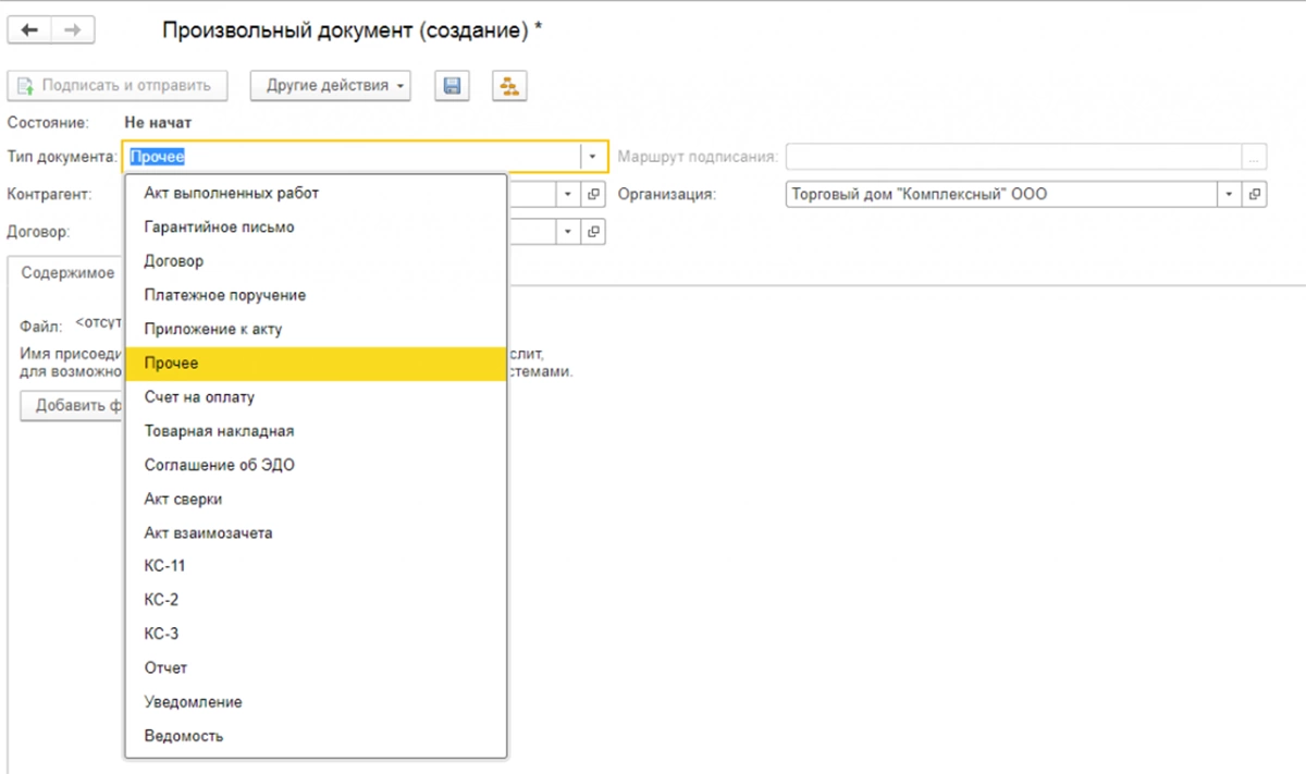 После установки галочки система понимает, что можно принять документ по ЭДО и отправить его. Также вы можете отправить доверенность по ЭДО или другие виды документов, но для этого нужны дополнительные настройки. Виды электронных документов определяются системой электронного документооборота.