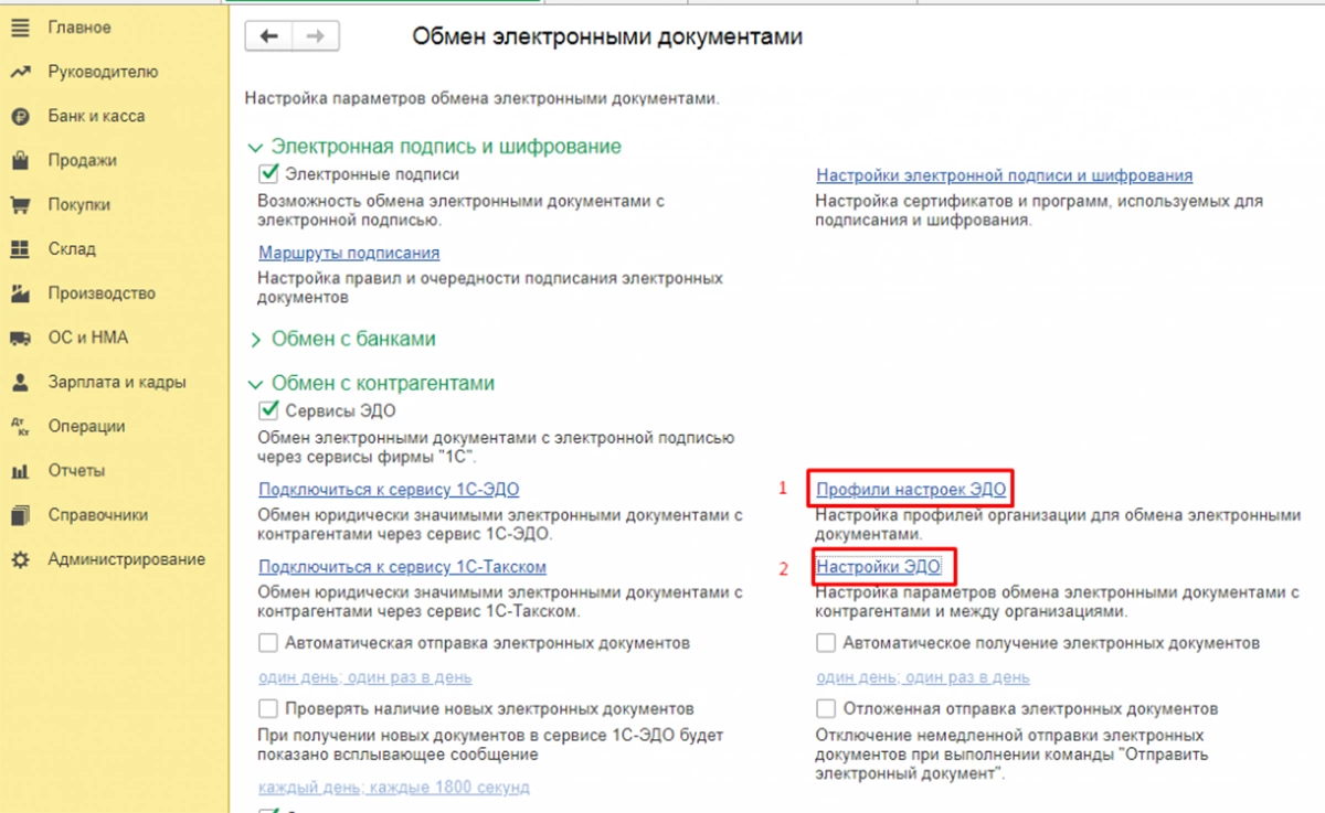 - Подключение к 1С-ЭДО