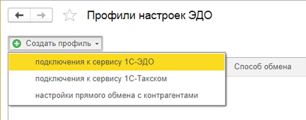 Профиль можно выбрать: для сервиса 1С-ЭДО (который поддерживает несколько операторов) или для 1С-Такском (который сам является оператором), а также можно настроить прямой обмен с контрагентами.