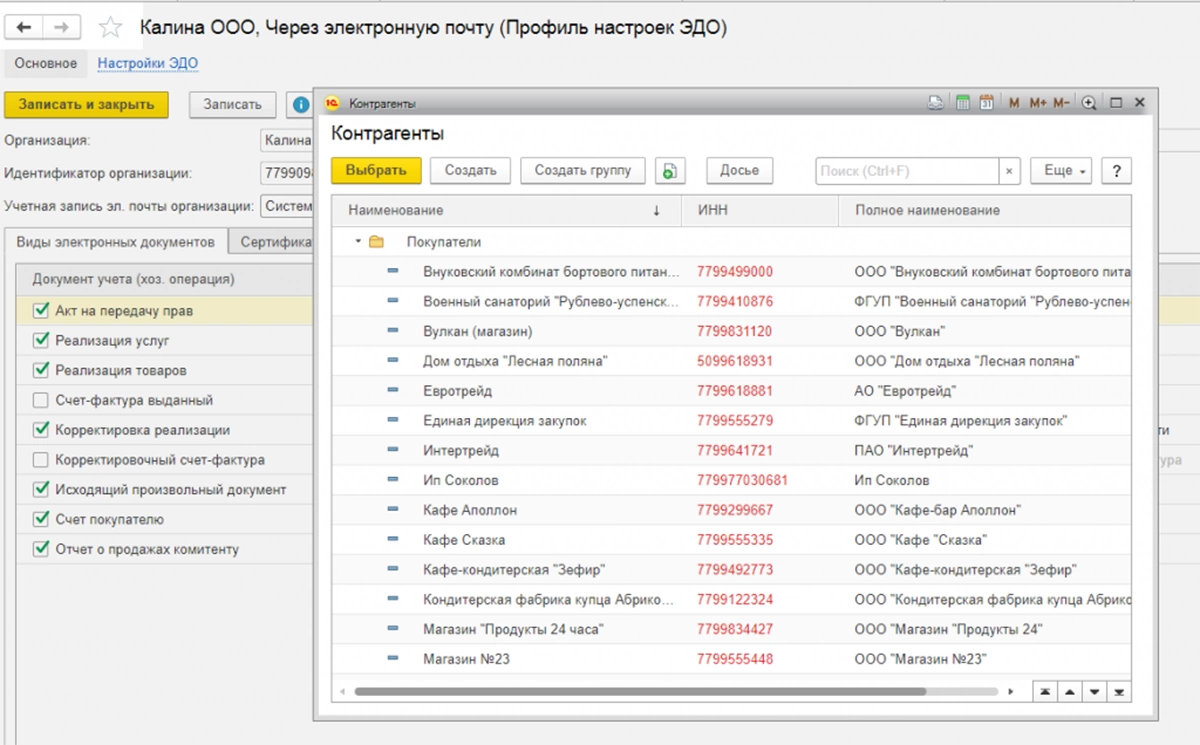 Настройка контрагента под ЭДО