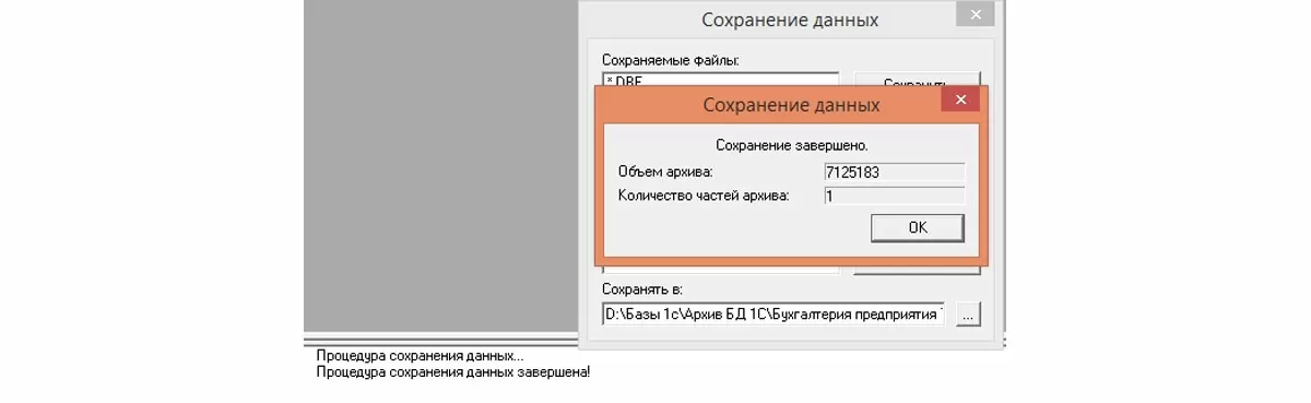 В появившемся окне указываем, куда будет сохранена копия БД. Жмем «Сохранить» и дожидаемся сообщения об окончании сохранения. Нажимаем «ОК», а затем — «Закрыть».