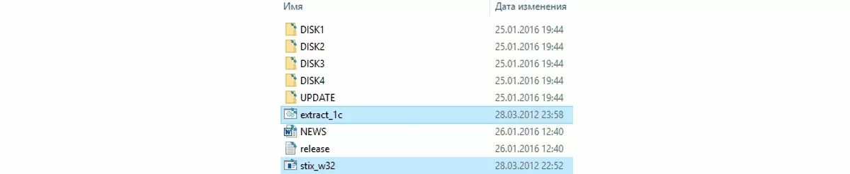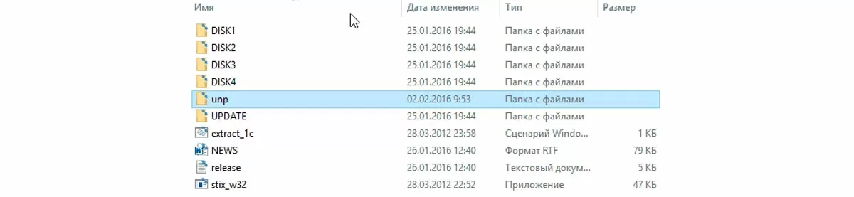 Запускаем файл extract_1С. Распакованное обновление появится в папке Unp.