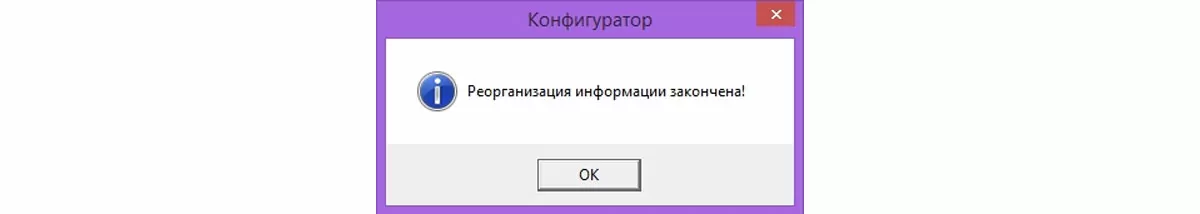 Дожидаемся появления сообщения об окончании реорганизации информации. Жмем «ОК».