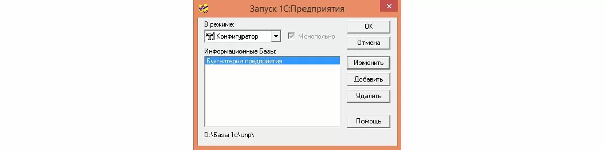 Теперь мы можем приступить к обновлению. Для начала заходим в базу данных (БД) в режиме конфигуратора.