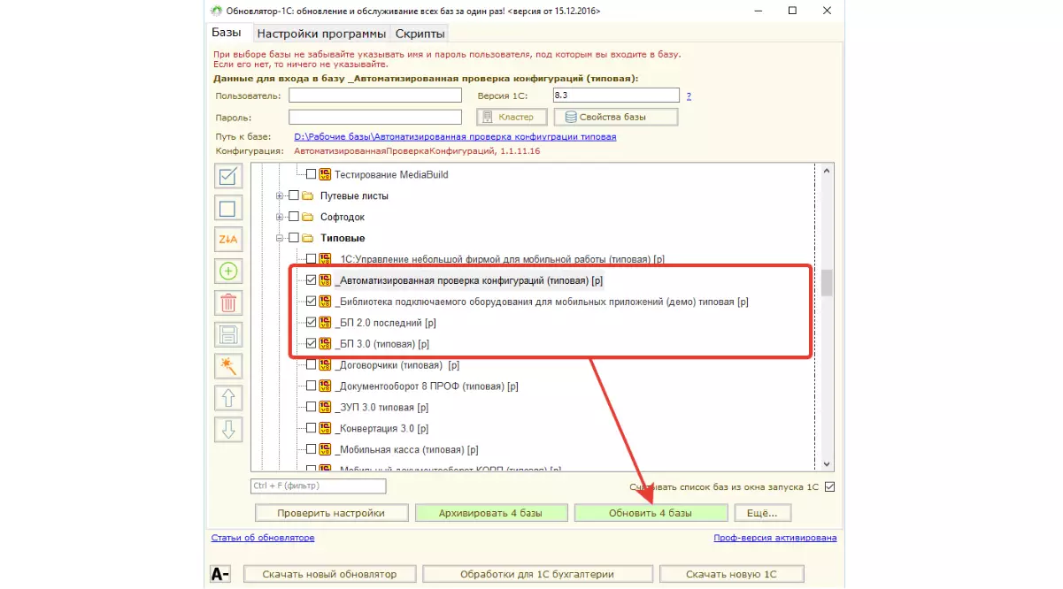 - безопасность – все операции в программе равносильны ручному обновлению 1С и осуществляются при помощи пакетного запуска платформы, что минимизирует риски потери данных;