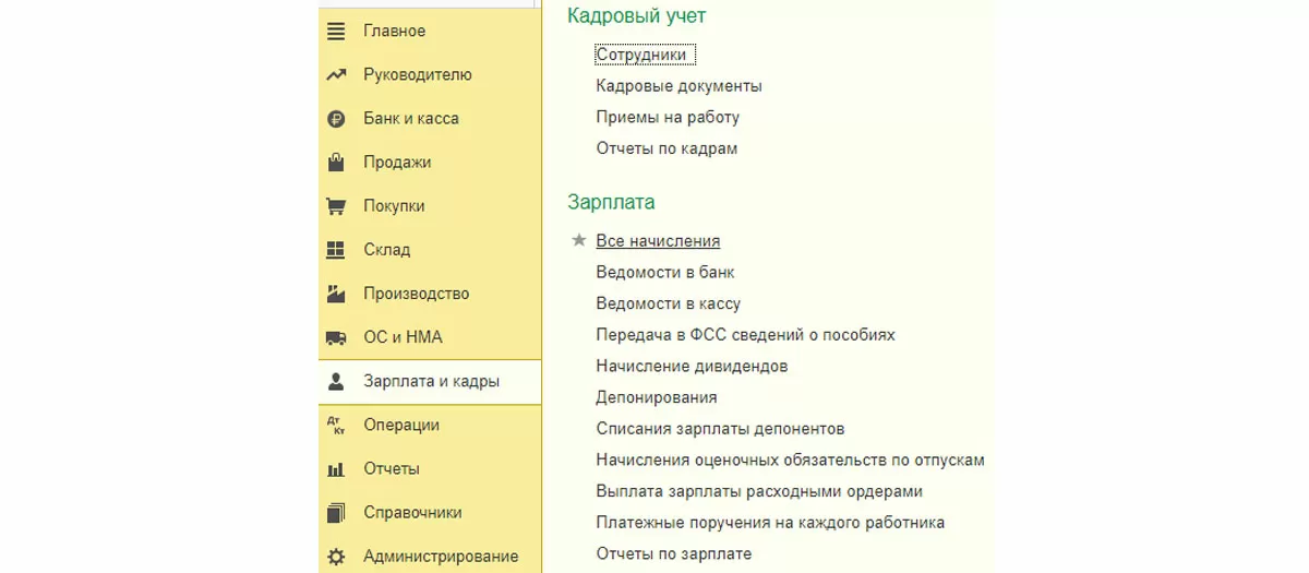Теперь начислим зарплату сотруднику основного и обособленного подразделения. Заработная плата в 1С 8.3 начисляется в разделе «Зарплата и кадры – Зарплата – Все начисления».
