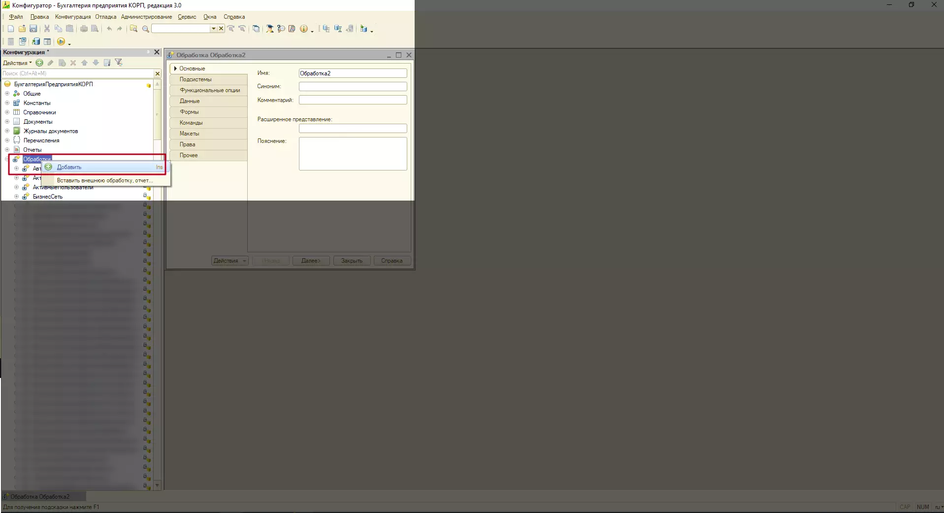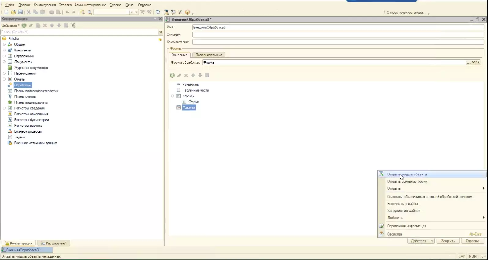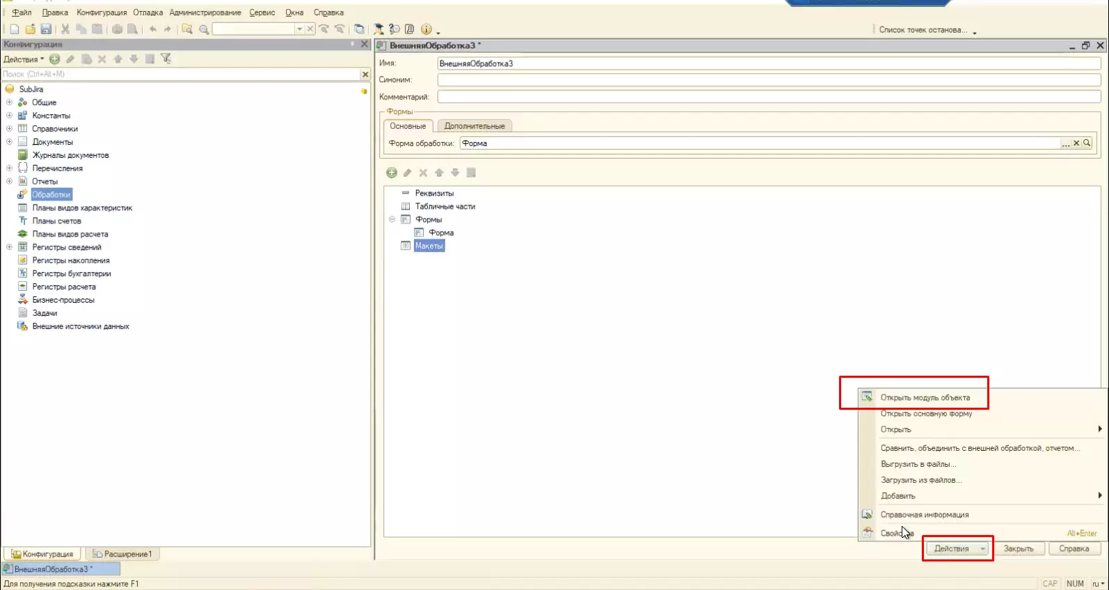 Как создать внешнюю обработку в 1С и посмотреть ее код