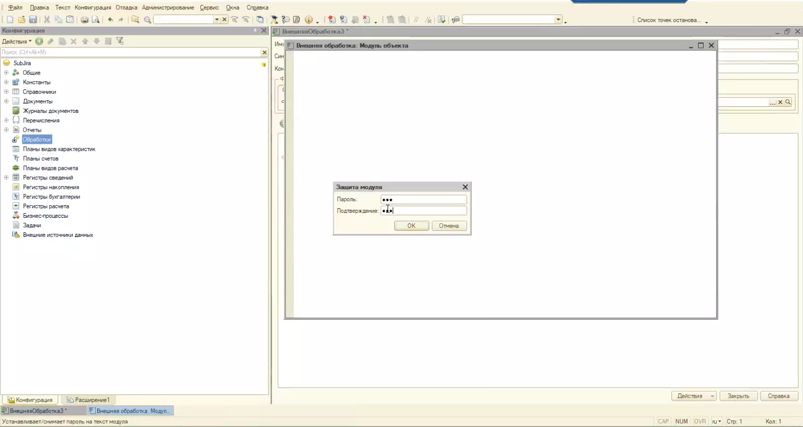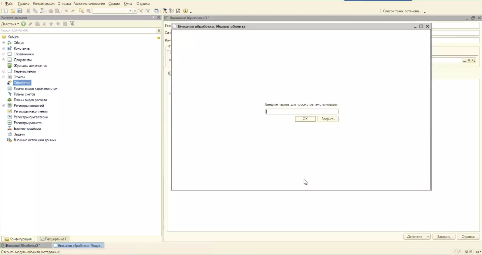 И при попытке открыть Модуль объекта база попросит ввести пароль доступа на данный модуль.