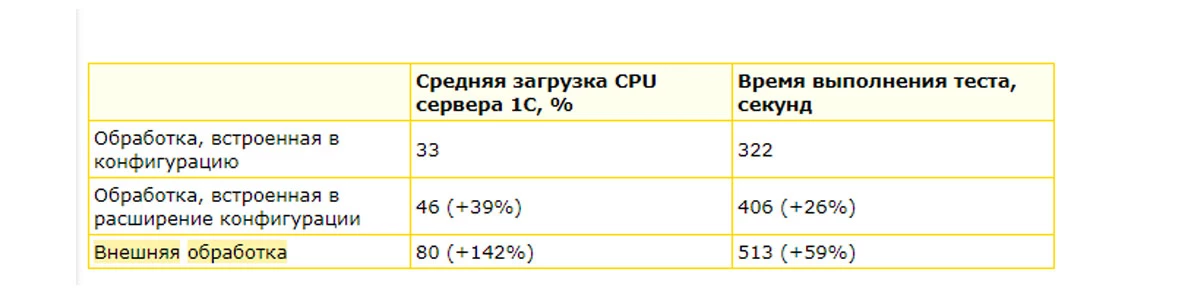 Когда мы пользуемся внешними обработками, нужно помнить, что они менее мощные в части производительности, чем те, что встроены внутрь конфигурации.