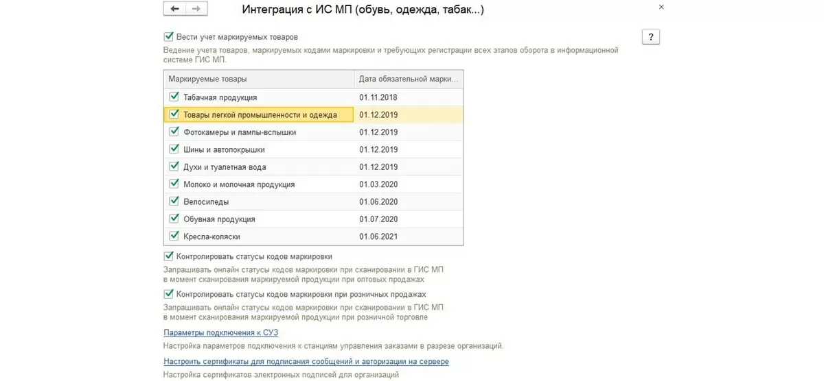 Маркировка товаров (обмен с ГИСМ и ИС МП) |