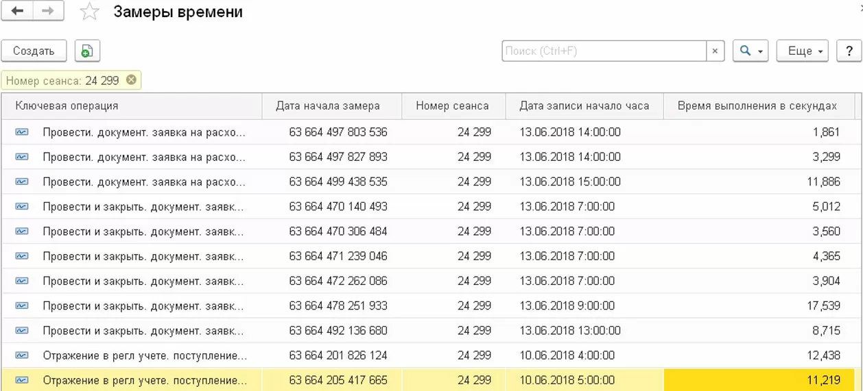 В типовые конфигурации 1С встроен механизм измерения времени выполнения операций. Чтобы его активировать, необходимо переменную «Выполнять замеры производительности» установить в значение «Истина». Все результаты измерений будут записывать в регистр сведений «Замеры времени», откуда вы сможете получать необходимые данные для расчета.