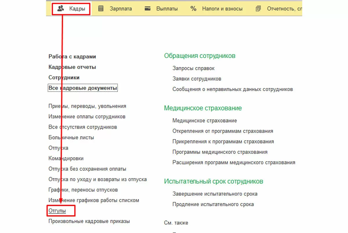 В свою очередь, дать отгул можно через одноименный документ, который находится в «Кадрах».