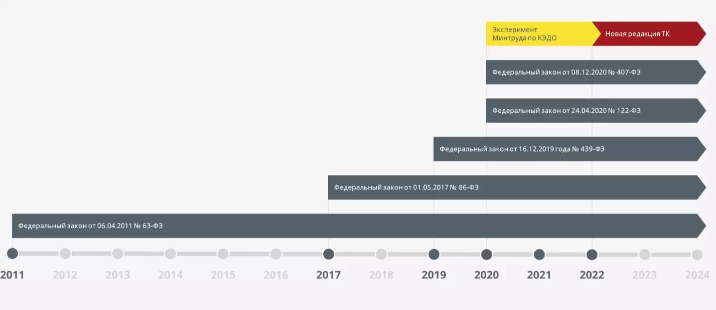 Есть ряд обязательных кадровых документов, которые требуют собственноручной подписи согласно закону. Чтобы перевести их в электронный вид потребуются УКЭП - усиленная квалифицированная электронная подпись. Например, приказ о приеме на работу, приказ об увольнении и прочие.