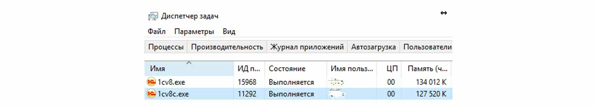 - С помощью Диспетчера задач. При завершении сеансов информация у пользователей, работающих в системе, может не сохраниться, и важные данные могут быть потеряны. Завершить сеансы данным способом можно так: вызвать диспетчер задач (Ctrl+Alt+Delete), затем нажать снять задачу, затем завершить процесс. Процессы 1С называются 1Сv8.exe или 1Сv8c.exe.