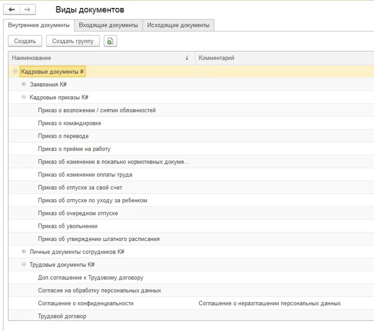 Настроены сервисные возможности 1С:Документооборот 8 КОРП: