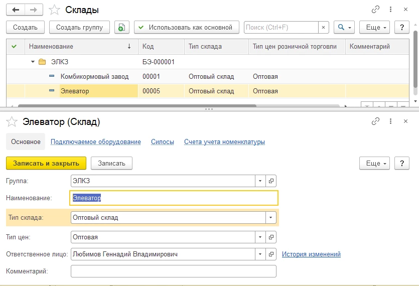 - Справочник Склады — в нем содержится информация обо всех складах организации, что позволяет легко управлять складскими остатками и движением товаров.