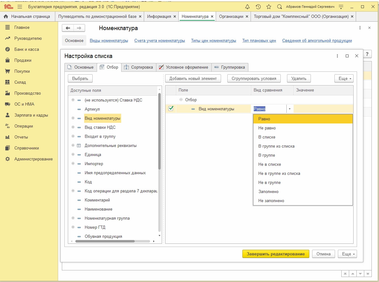 Задаем вид сравнения и значение, жмем «Завершить редактирование», отбор установлен.
