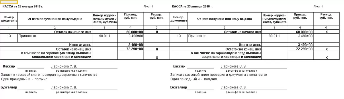 Из документа есть можно распечатать КМ-6 (Справка-отчет кассира-операциониста).