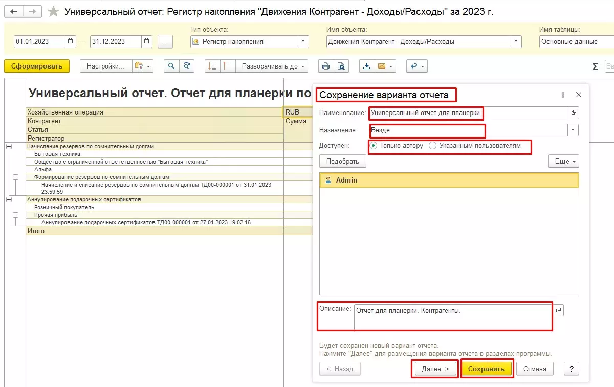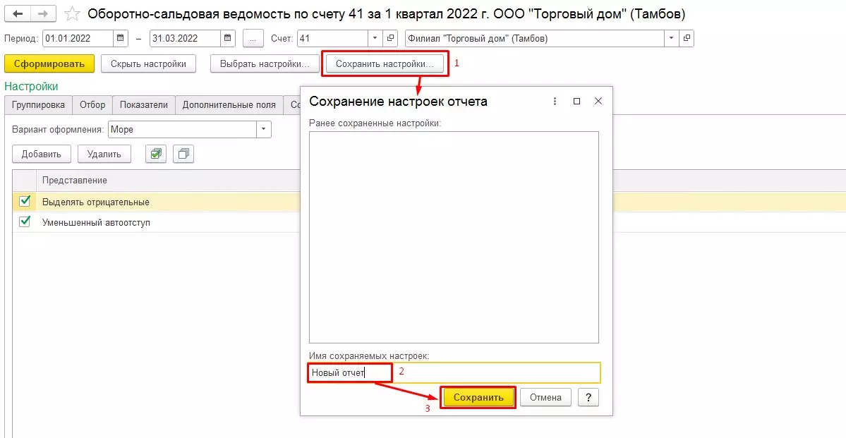 Сохранение настроек отчета в 1С КА 2