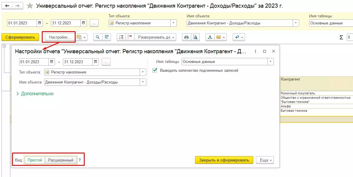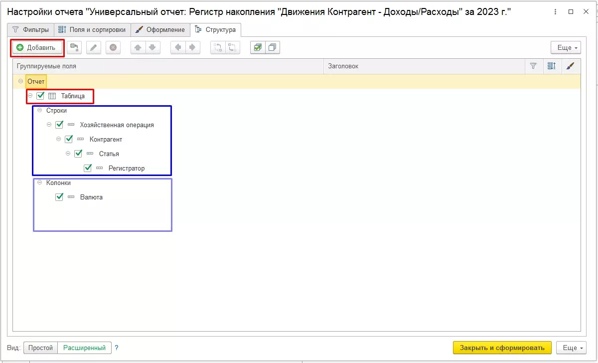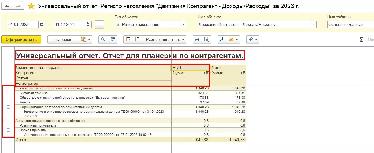 Формирование Универсального отчета