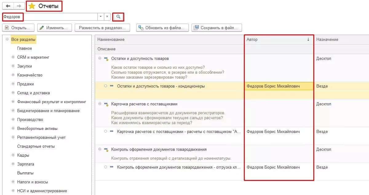 Иногда требуется найти все отчеты одного автора. Такой вариант тоже возможен. Набираем в поисковой строке автора отчета, после чего в правой части журнала формируется полный список отчетов искомого автора.