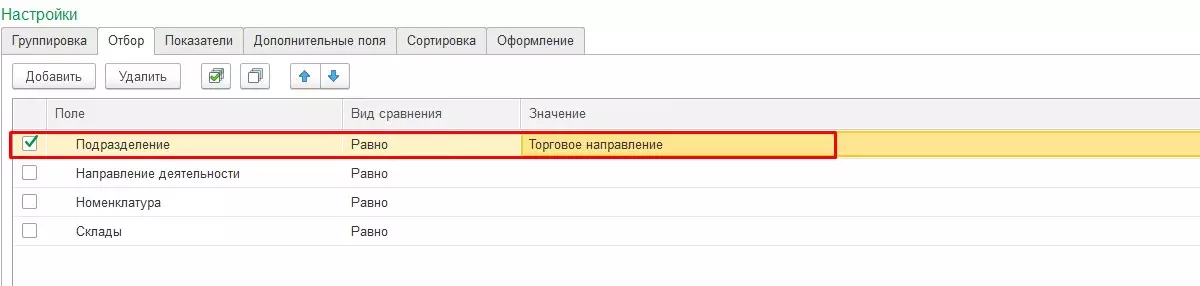 В этом случае отчет выведет только те позиции, которые соответствуют настроенному фильтру.