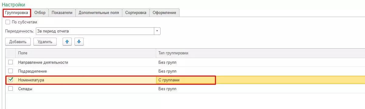 Отчет станет более структурированным, предоставляя возможность пользователю просмотреть информацию в разрезе видов товара.
