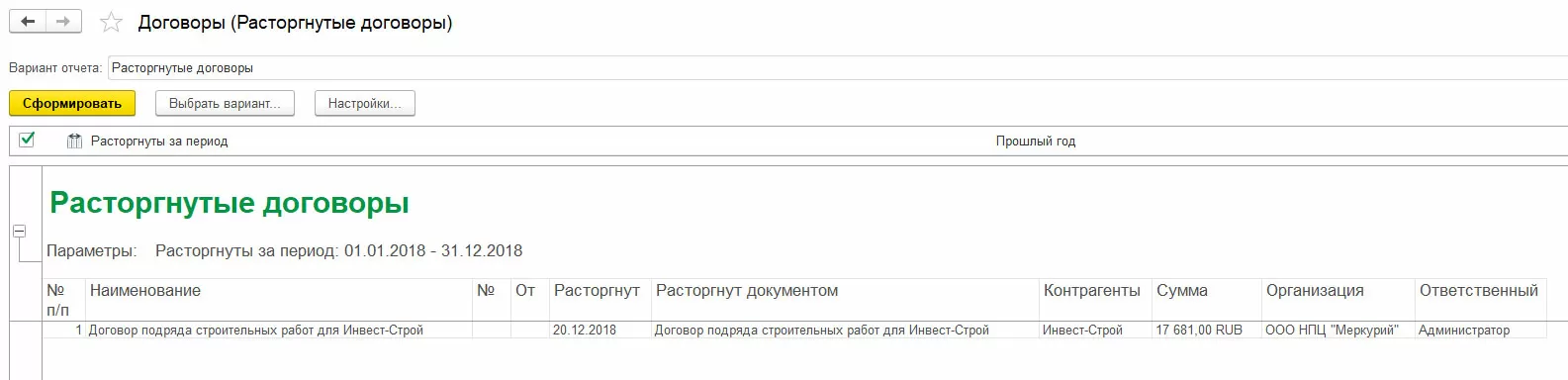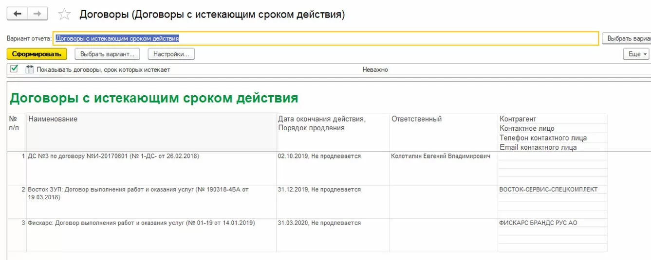 Отчеты по управлению договорной деятельностью отражают актуальные данные по текущим договорам за интересующий период.