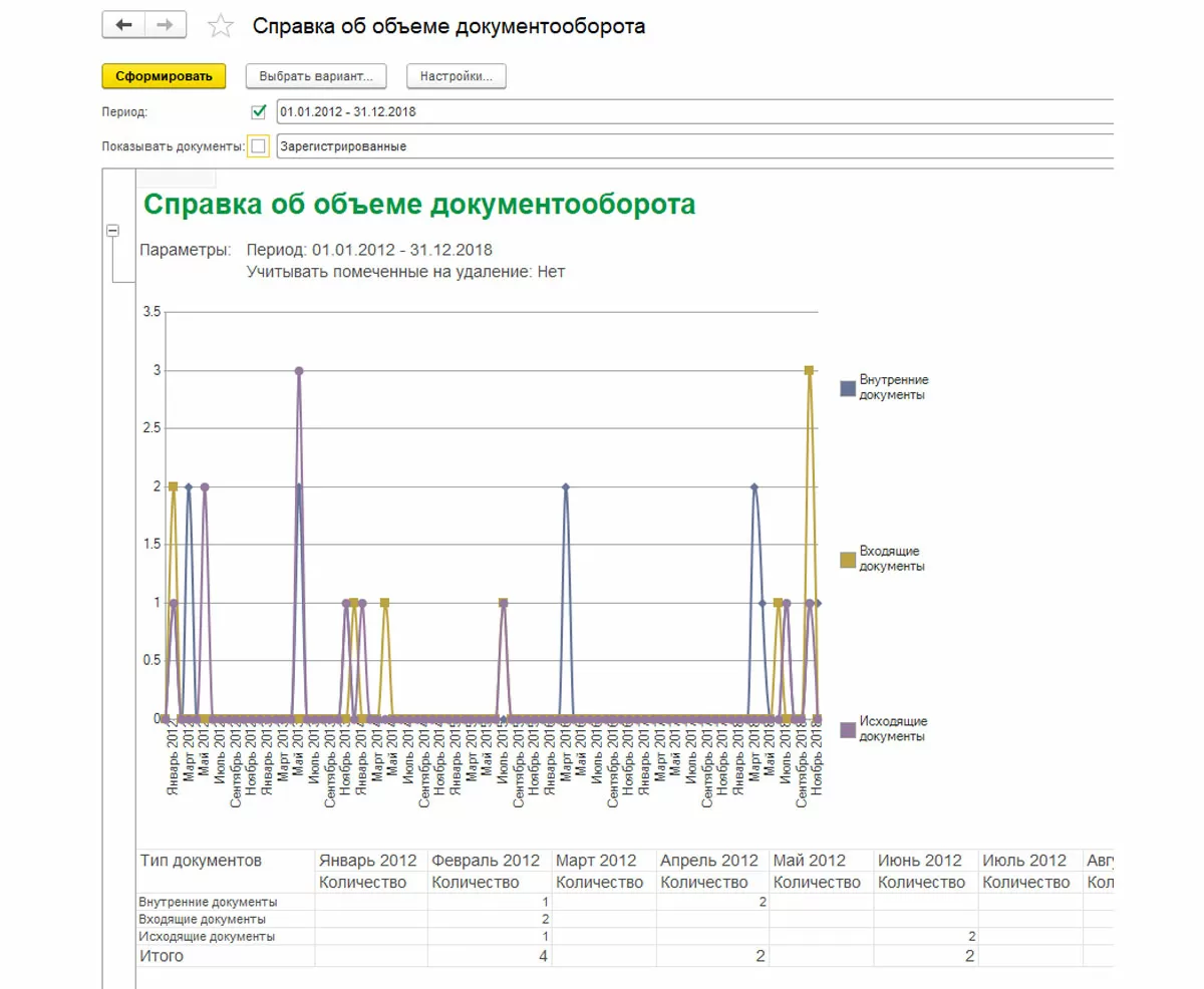 Одной из важных задач, которые решает 1С:Документооборот – предоставлять необходимую отчетность пользователям для анализа и оперативного контроля. Отчеты предназначены для вывода информации из базы данных в структурированном виде.