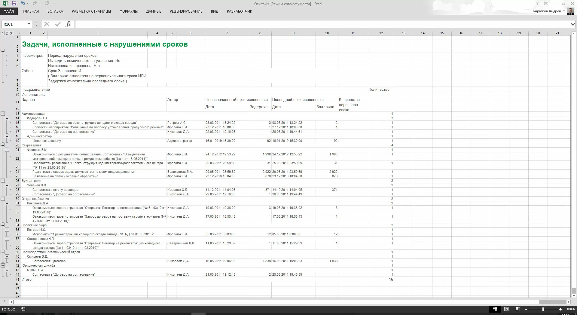 Есть еще несколько отчетов, которые позволяют руководителям оперативно оценить ситуацию с исполнительской дисциплиной в различных разрезах.