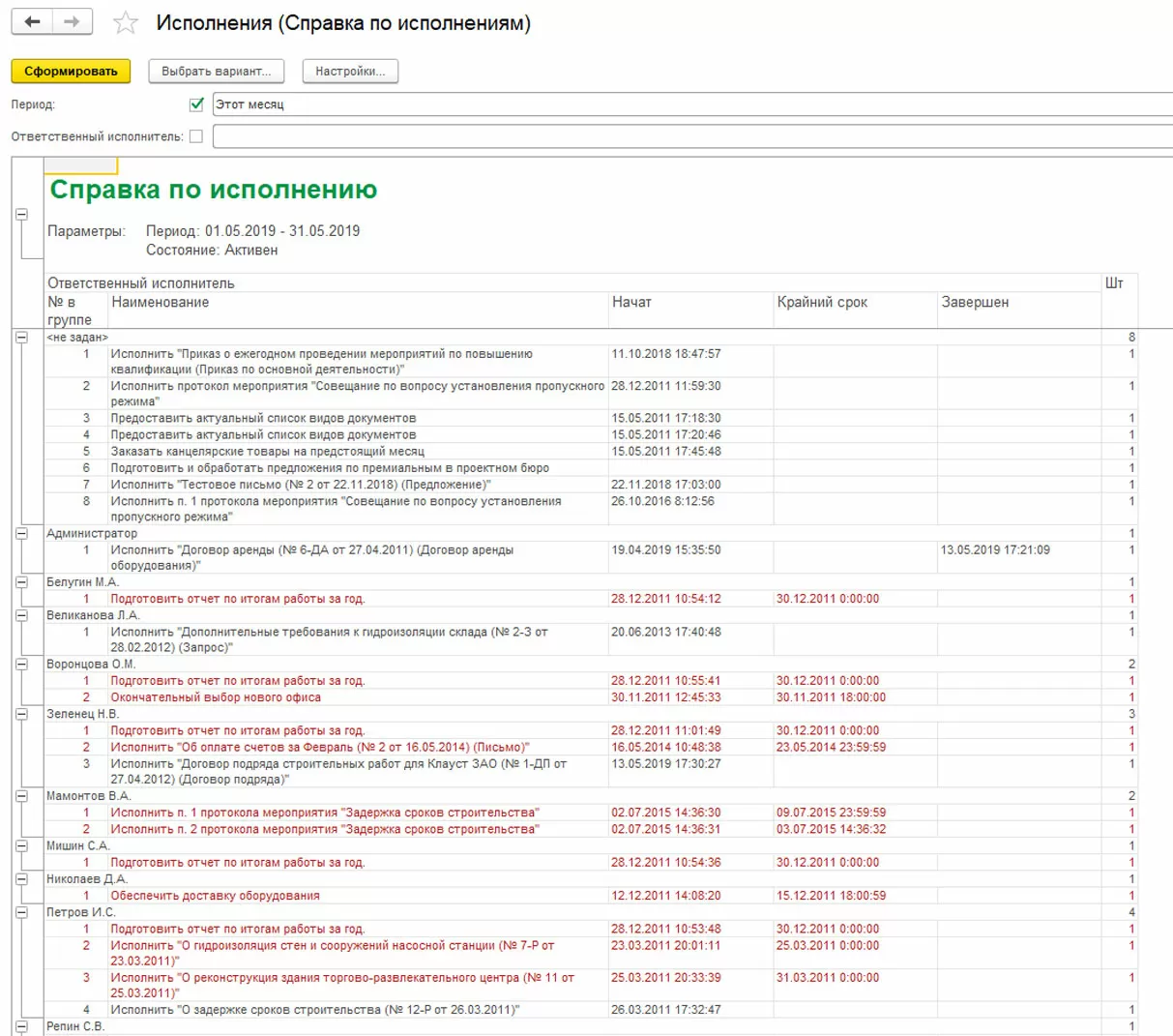 Как узнать состояние исполнительской дисциплины в компании? Кто из сотрудников и как часто нарушает установленные сроки? Как часто происходят просрочки поручений и задач на текущий момент и за текущий год? Сколько времени сотрудники проводят на всевозможных совещаниях, встречах, планерках? Насколько оптимально выстроены текущие процессы в компании, или есть такие, которые тормозят работу?