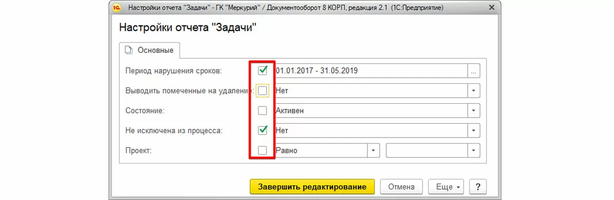 Обладая определенными знаниями и опытом работы с настройками на СКД в 1С:Документооборот можно произвести тонкую настройку, изменяя практически все параметры самого отчета. Зачастую такой настройкой занимаются специалисты при внедрении системы, или в дальнейшем – очень опытные пользователи, имеющие специальные навыки для этого.
