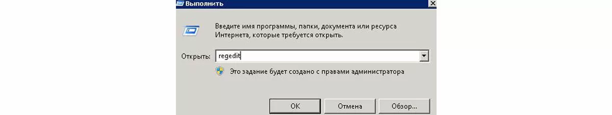- Перейдите на сервер 1С и откройте регистр через функцию «Выполнить» из меню «Пуск». Также можно воспользоваться одновременным нажатием клавиш Windows и R на клавиатуре. Введите команду открытия регистра - «regedit»;