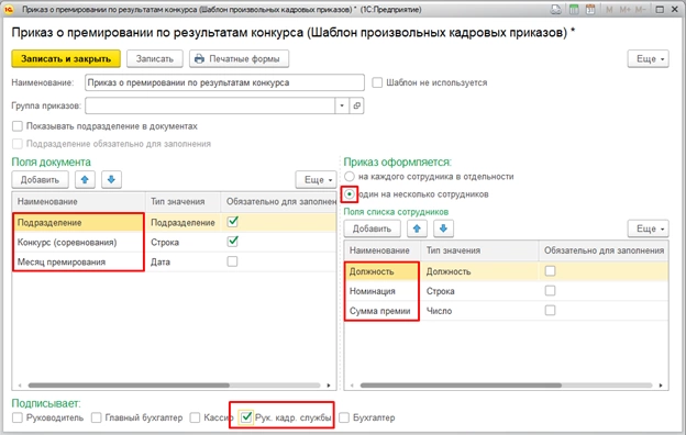 - Указать, предназначен ли документ для одного сотрудника или для нескольких;