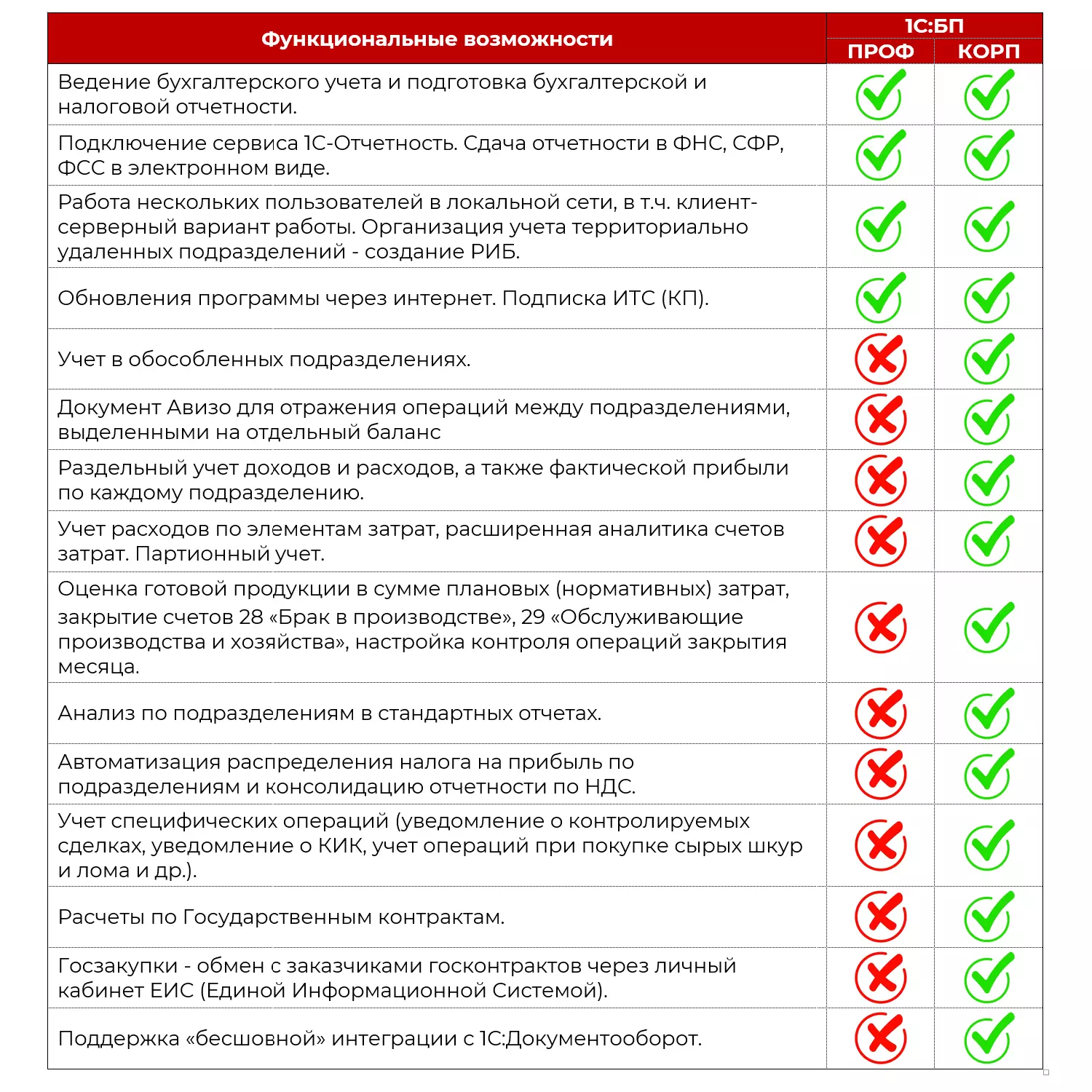 - Отличия ПРОФ И КОРП – 1С:Бухгалтерия предприятия 3.0