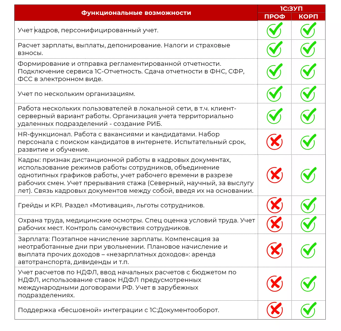 Отличия ПРОФ и КОРП – 1С:Зарплата и управление персоналом