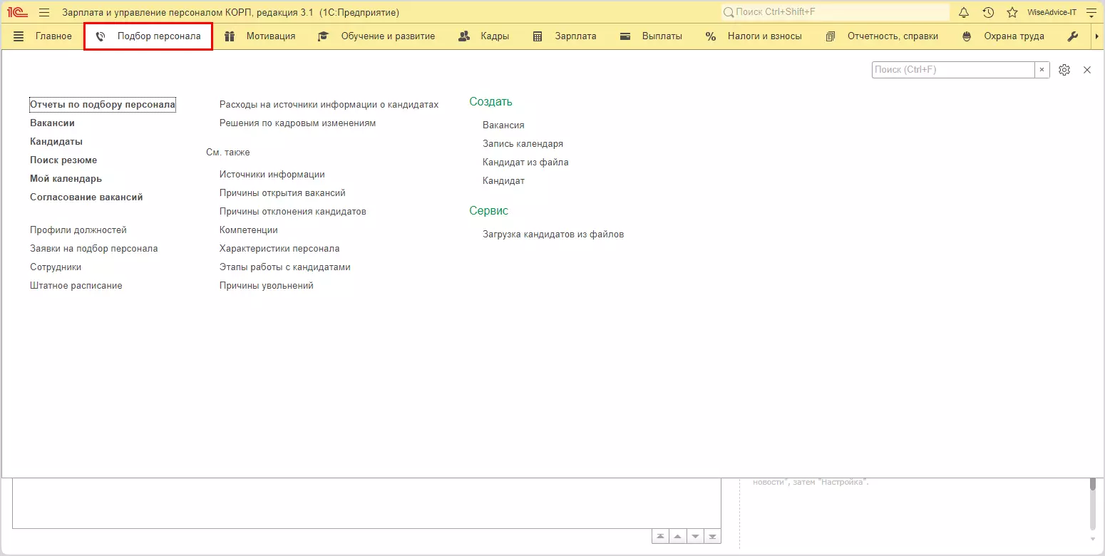 Раздел Подбор персонала поможет кадровику автоматизировать этапы своей работы, начиная от портрета кандидата до сдачи регламентированной отчетности.