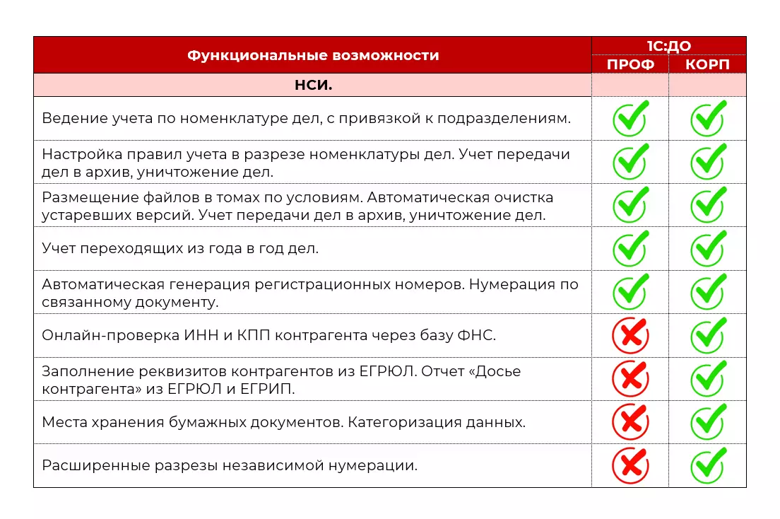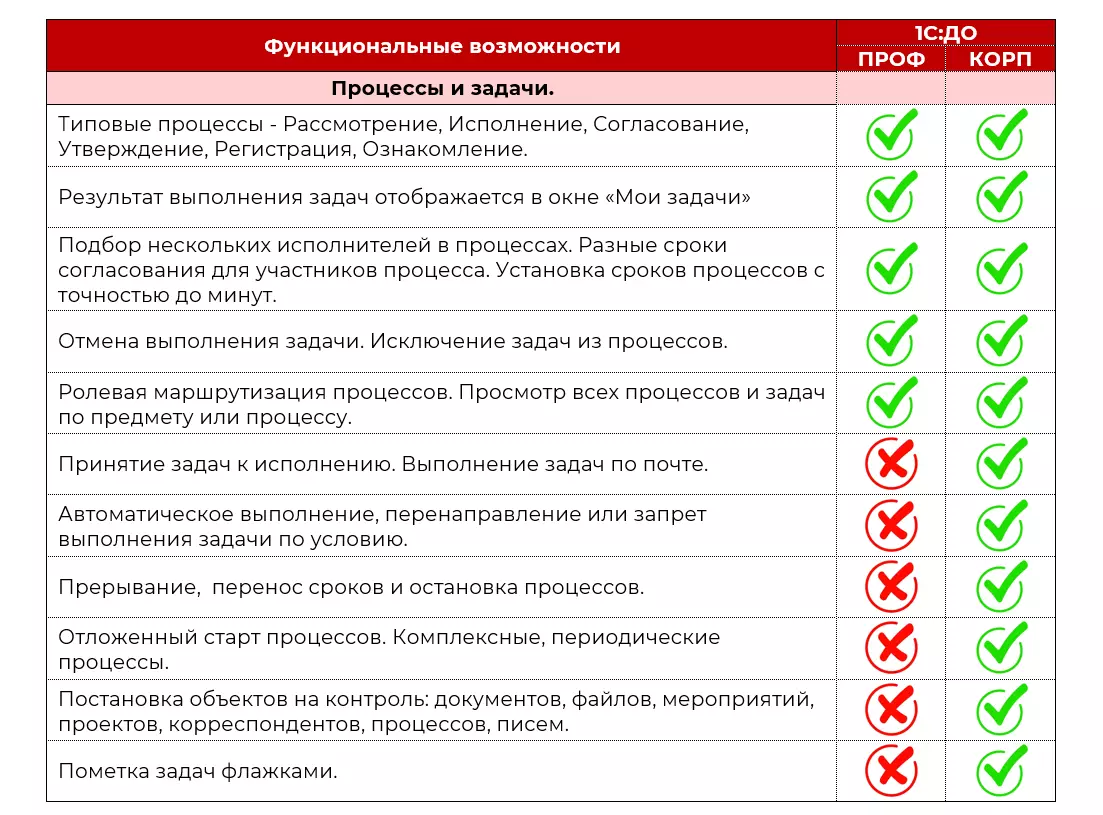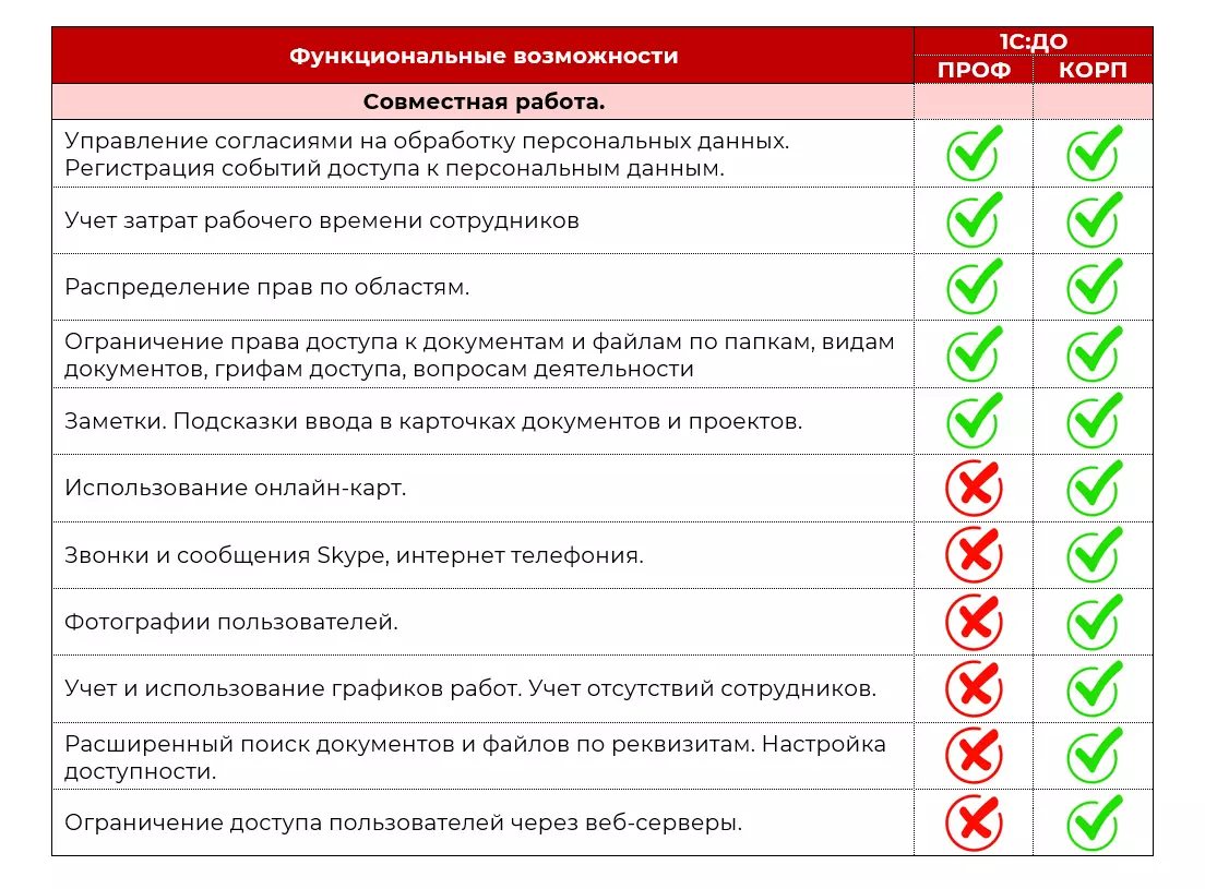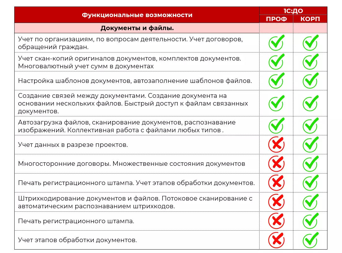 Отличия ПРОФ и КОРП – 1С:Документооборот