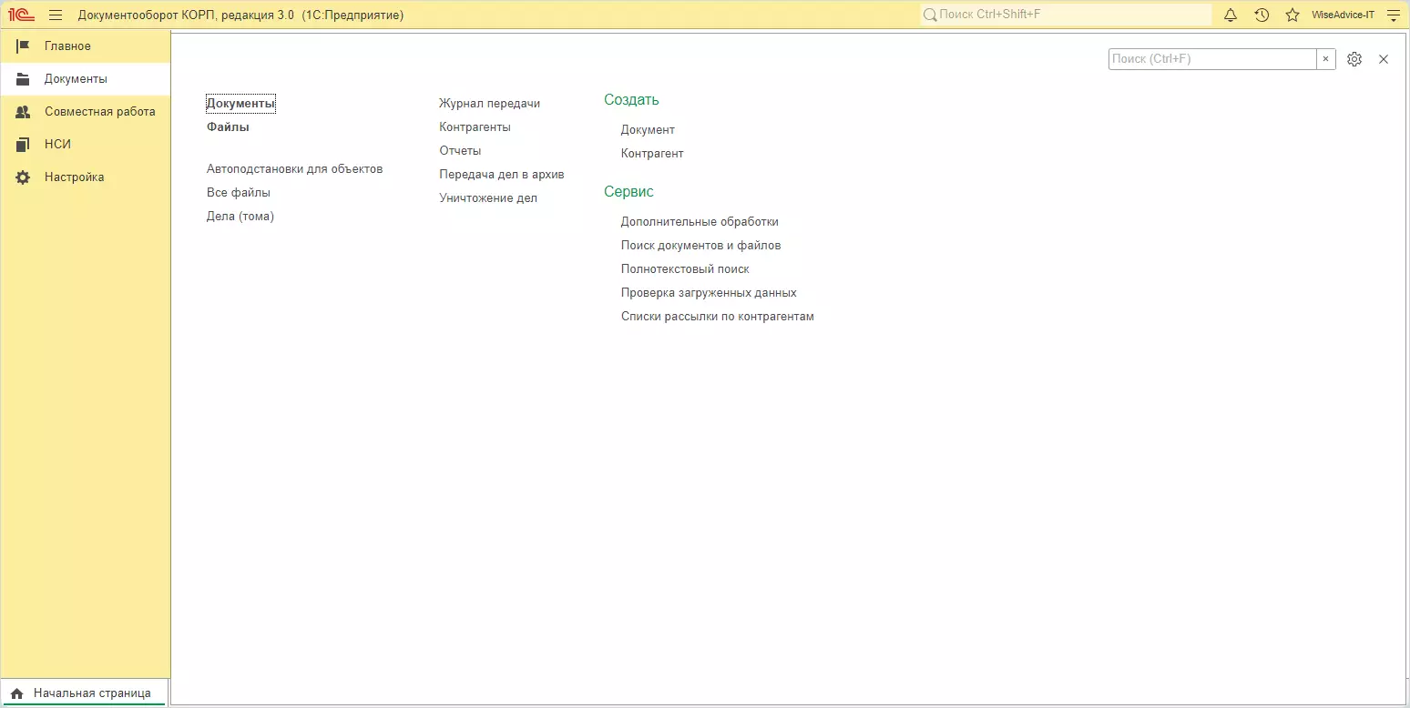 Еще одним преимуществом Бухгалтерии КОРП является возможность применения «бесшовной» интеграции с 1С:Документооборот. Благодаря такому механизму из 1С:Бухгалтерия можно открывать любые документы, файлы, задачи, переписку из 1С:Документооборот.