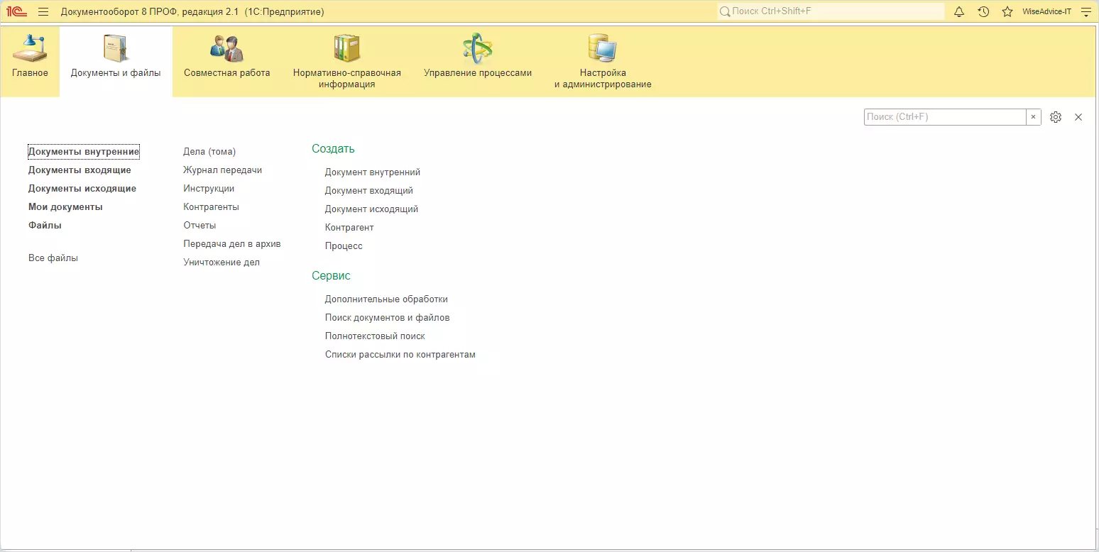 Как видите, 1С:Документооборот как версии ПРОФ, так и КОРП предоставляет пользователю огромные возможности для создания документов с последующим отслеживанием статусов работы с ним. Программа позволяет также быстро найти документ, выступая при этом своего рода информационным архивом.