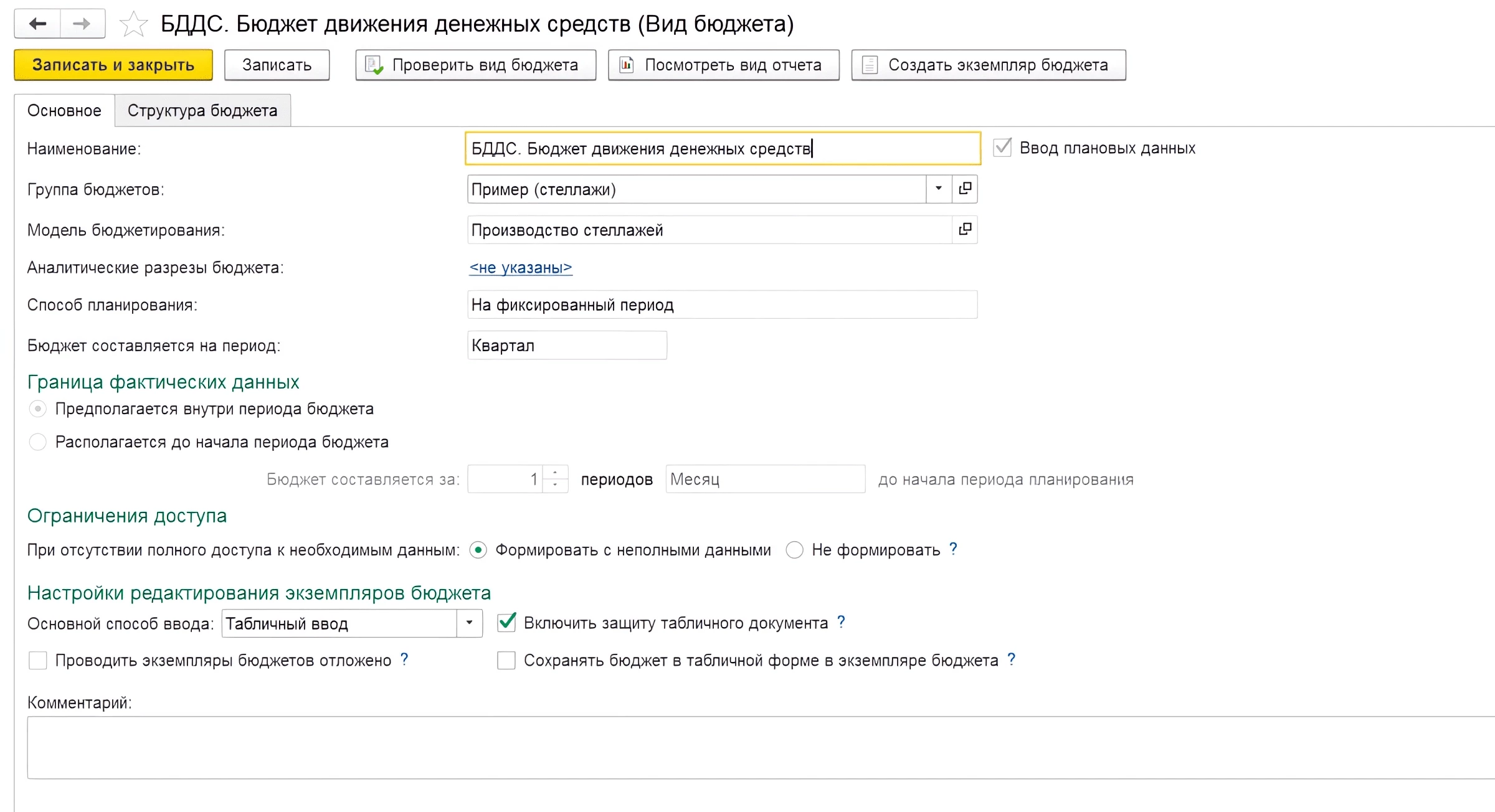 Создание и настройка видов бюджетов в 1С включает в себя создание форм ввода экземпляров бюджета и отчетных форм. Вид бюджета привязан к бюджетной модели.