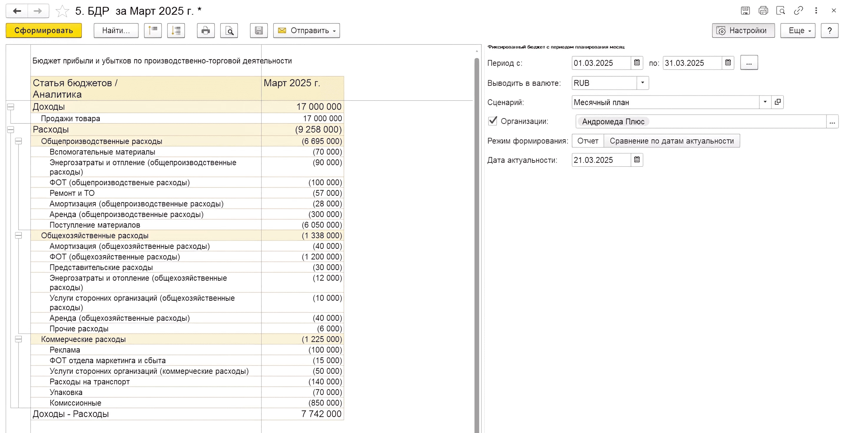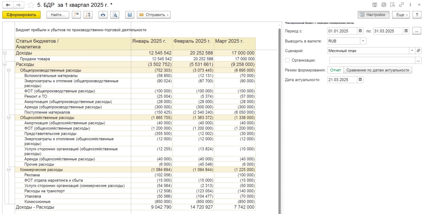 БДР позволяет компании прогнозировать прибыль, контролировать расходы и принимать обоснованные бизнес-решения. В программе 1С: ERP процесс составления БДР можно автоматизировать. Рассмотрим основные шаги по созданию БДР в 1С.