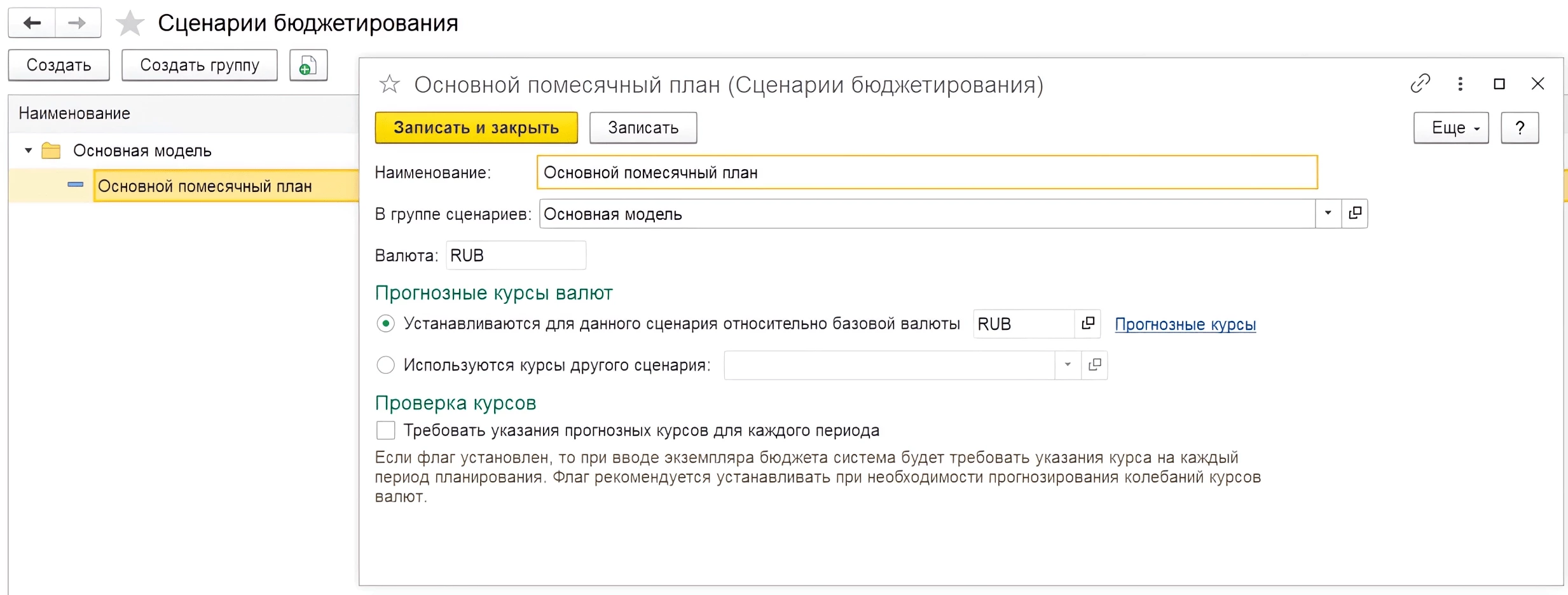 Сценарий выступает в роли разделителя плановых данных. Создавайте различные сценарии для учета, такие как стратегический, пессимистичный, квартальный и другие.