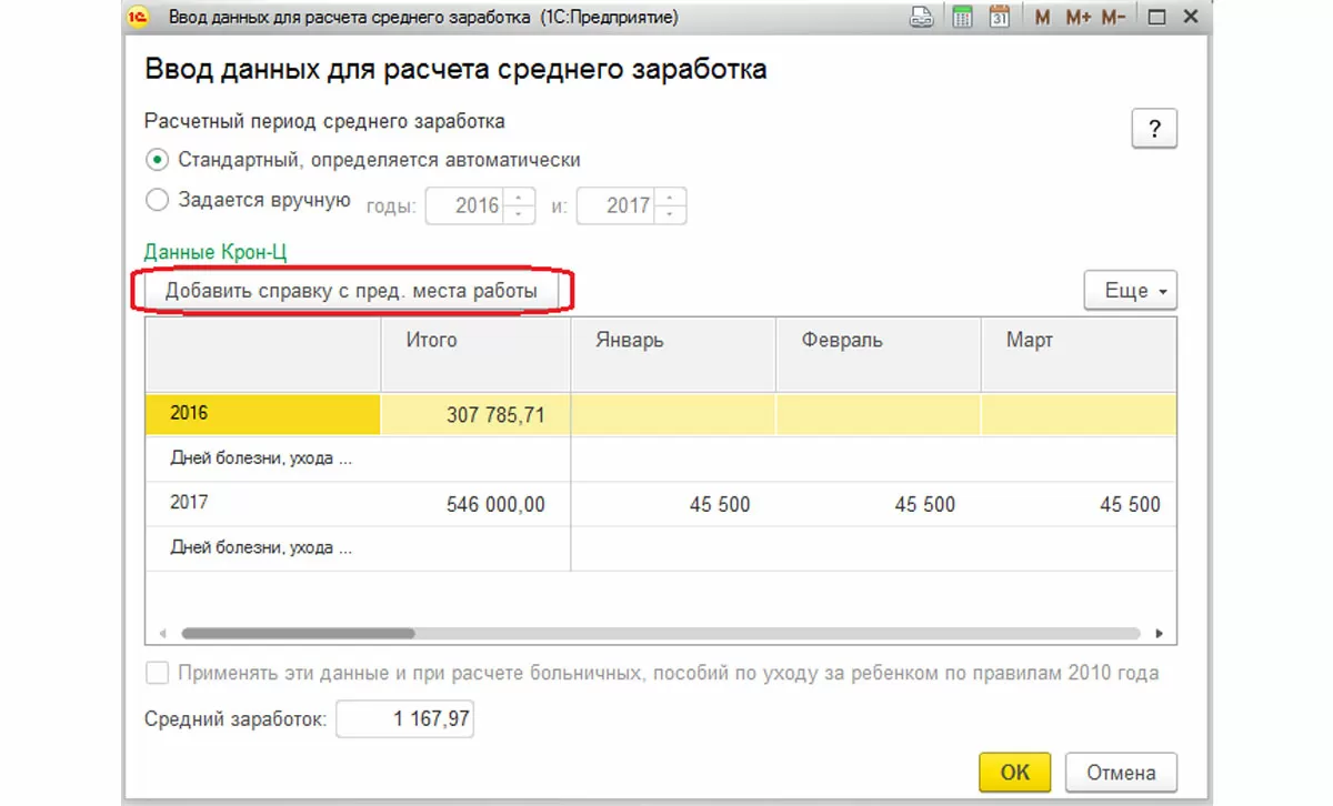 - Если необходимо учитывать заработную плату, полученную у предыдущего работодателя, то указываем этот признак (п.5, Рис.8).